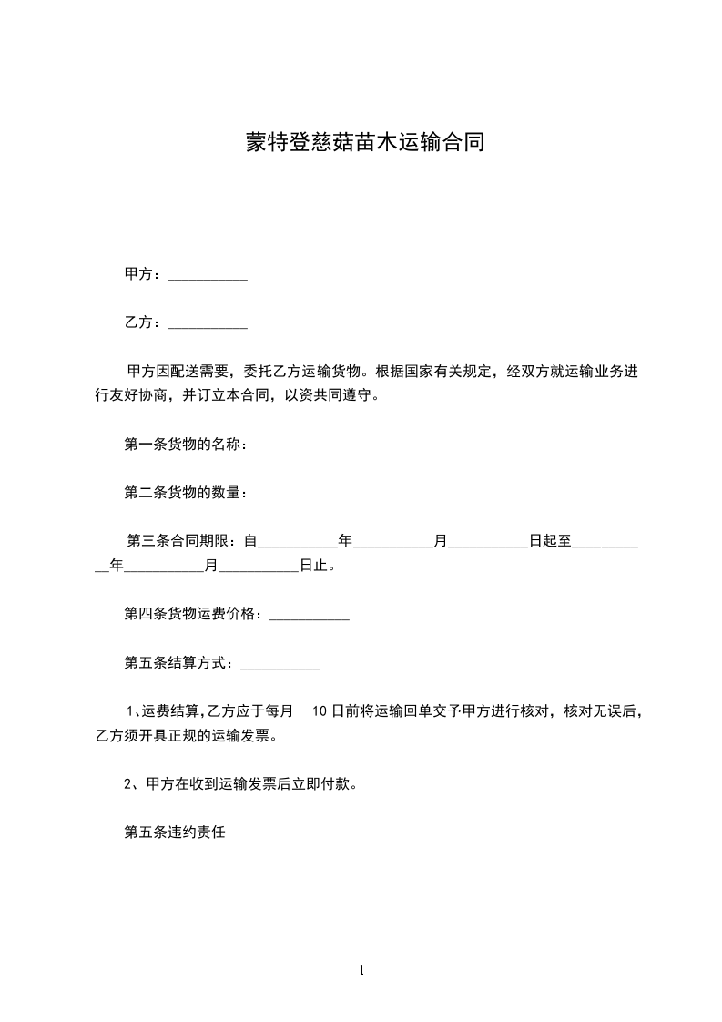 1、不按合同规定的时间和要求配车、发运的,承运方应偿付甲方违约金____元。