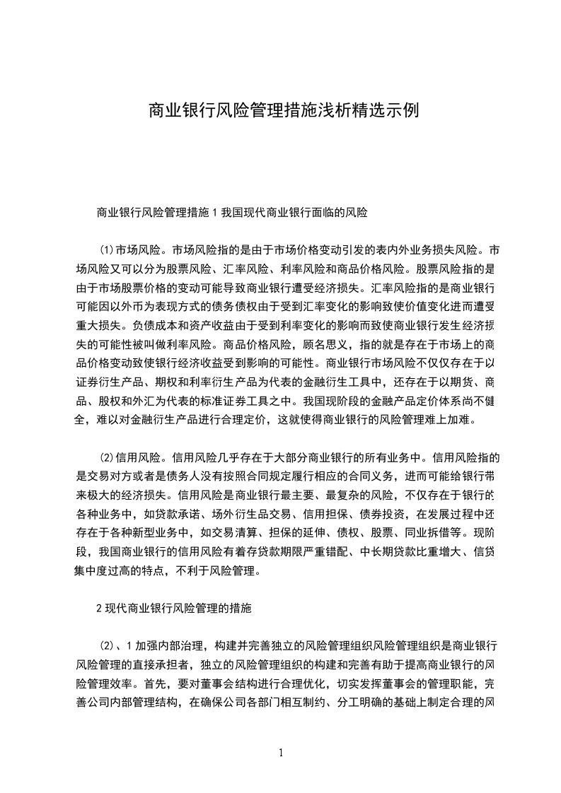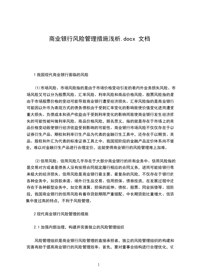 商业银行风险管理措施1我国现代商业银行面临的风险