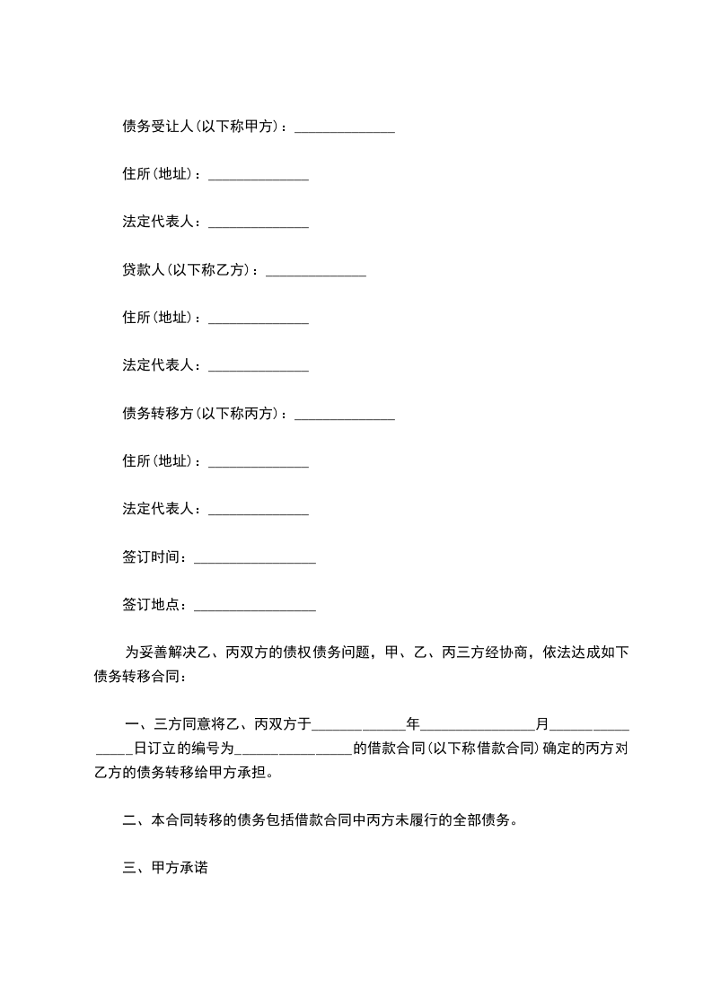 债务转移方(以下称丙方):______________