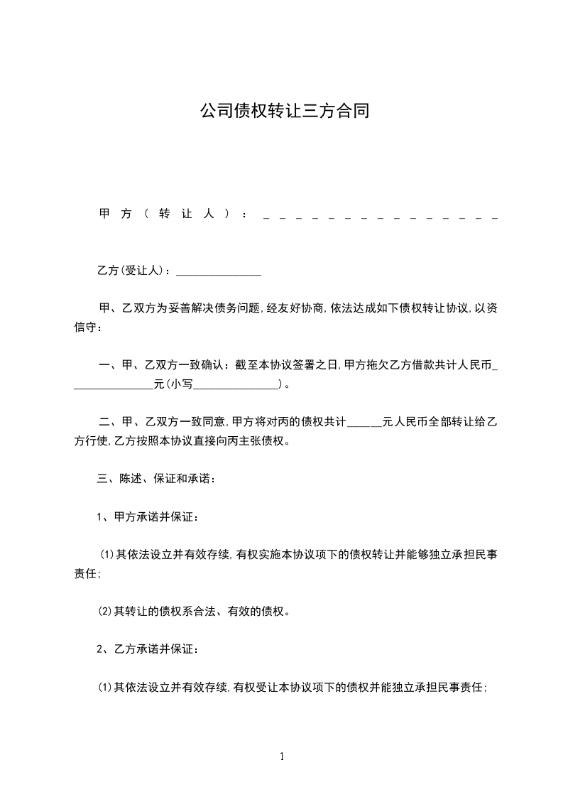 一、三方同意将乙、丙双方于_____________年________________月________________日订立的编号为________________的借款合同(以下称借款合同)确定的丙方对乙方的债务转移给甲方承担。