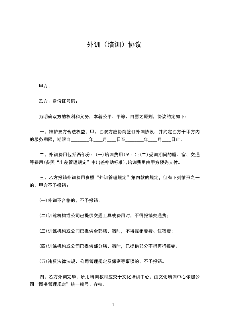 一、维护双方合法权益,甲、乙双方应协商签订外训协议,并约定乙方于甲方内的服务期限,期限自________年____月____日至________年____月____日止。