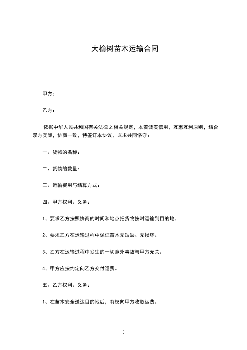 2、要求乙方在运输过程中保证苗木无短缺、无损坏。