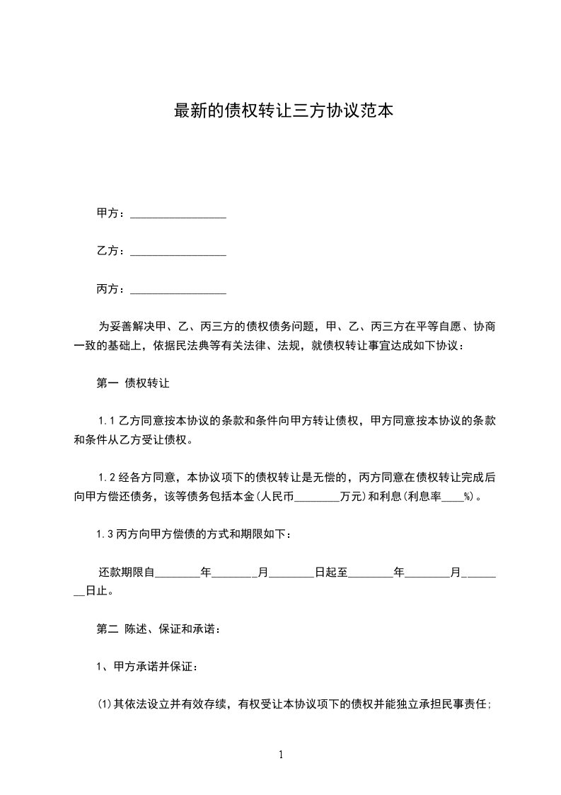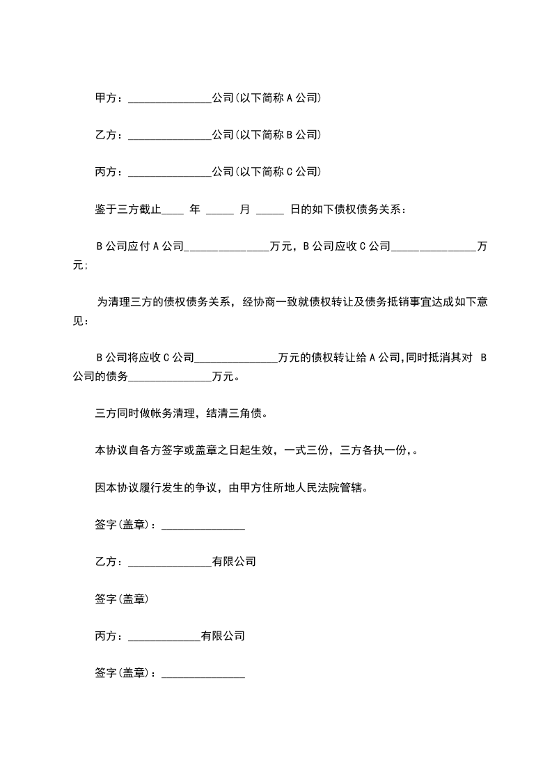 鉴于三方截止____ 年 _____ 月 _____ 日的如下债权债务关系: