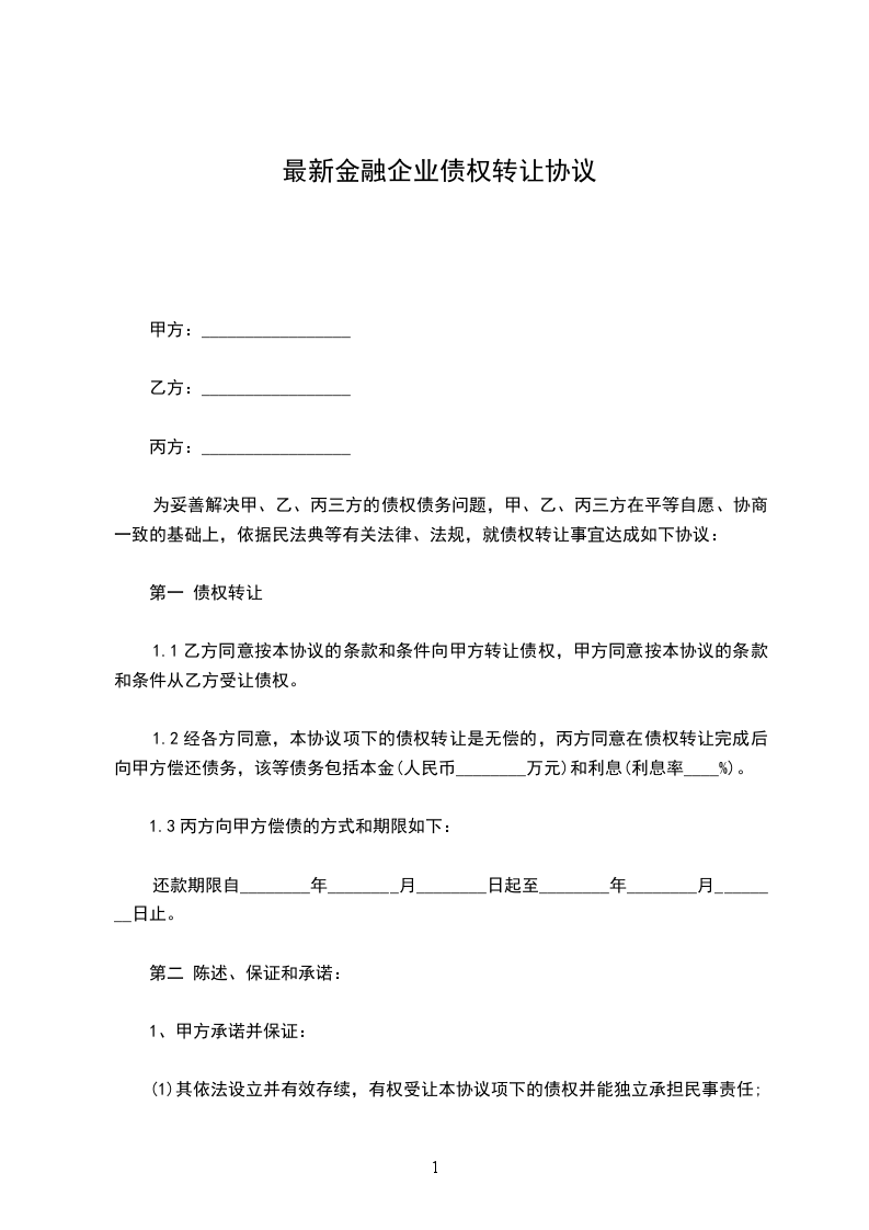 1.2经各方同意,本协议项下的债权转让是无偿的,丙方同意在债权转让完成后向甲方偿还债务,该等债务包括本金(人民币________万元)和利息(利息率____%)。
