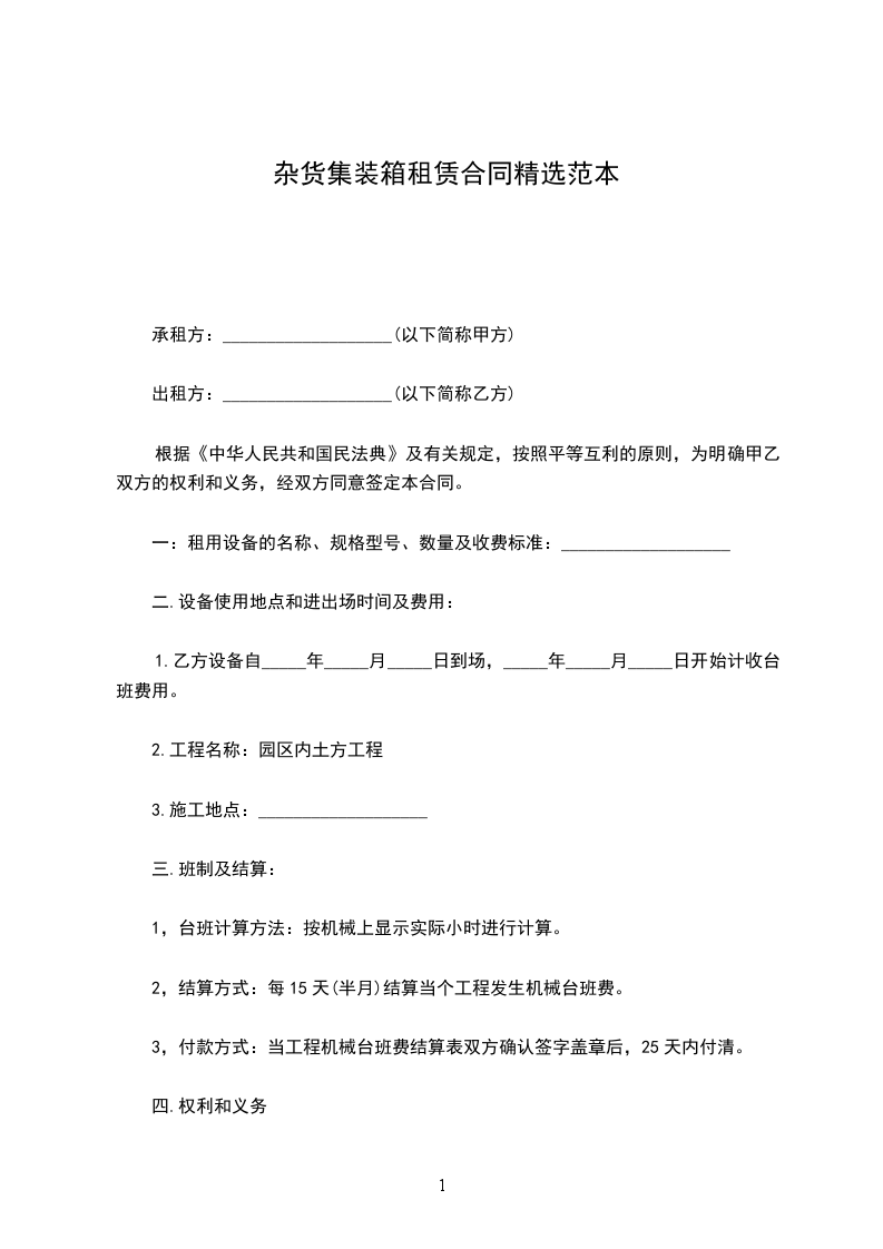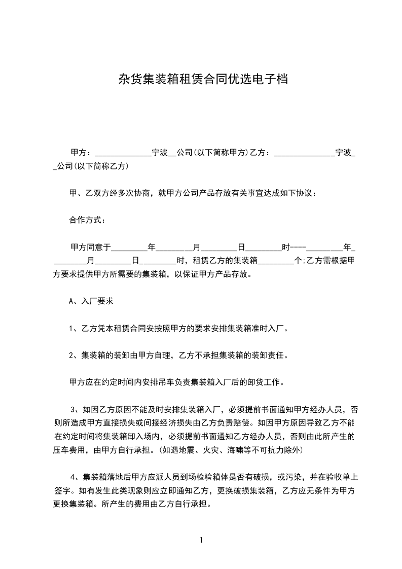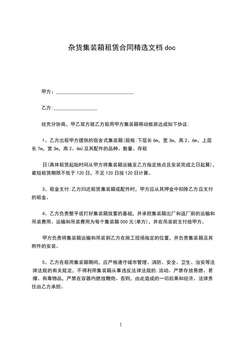 杂货集装箱采购合同word版