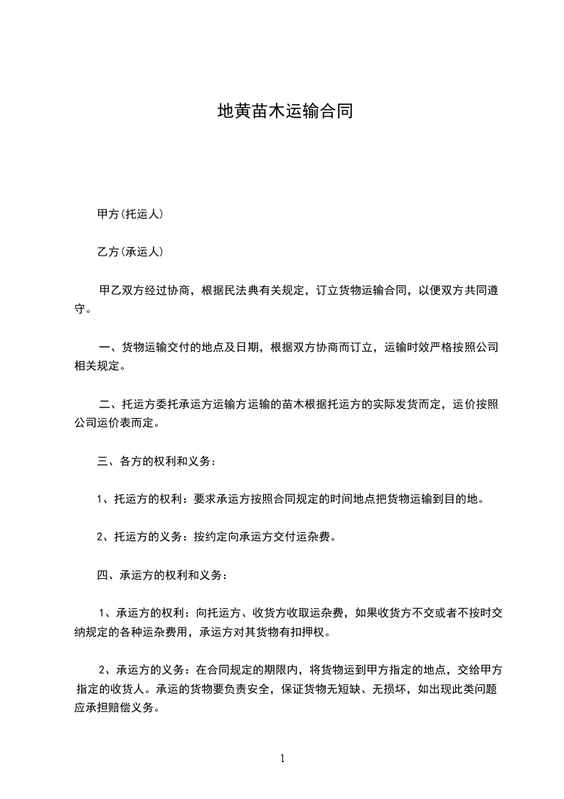 一、 乙方根据甲方业务需要,负责将甲方的苗木由______________送往___________。(具体地点根据客户情况而定,甲方所需车辆以乙方派车单上的车号为准)。