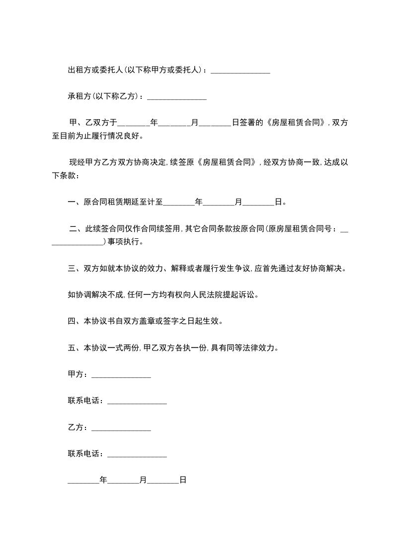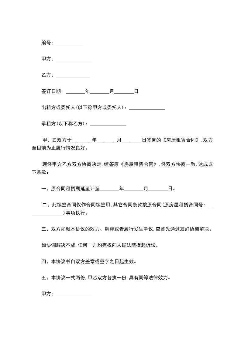 二、此续签合同仅作合同续签用,其它合同条款按原合同(原房屋租赁合同号:_______________)事项执行。