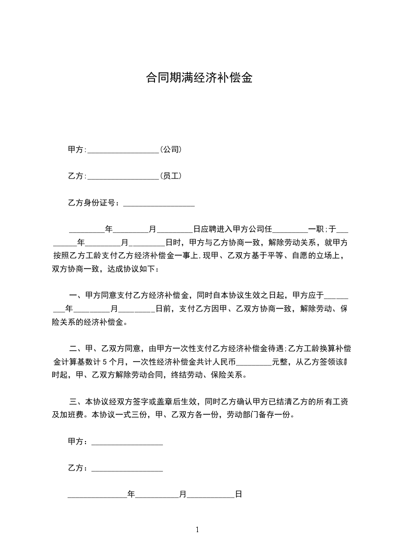 二、甲方一次性支付乙方人民币________元(包含但不限于乙方服务期间所有的加班加点费及经济补偿等费用);