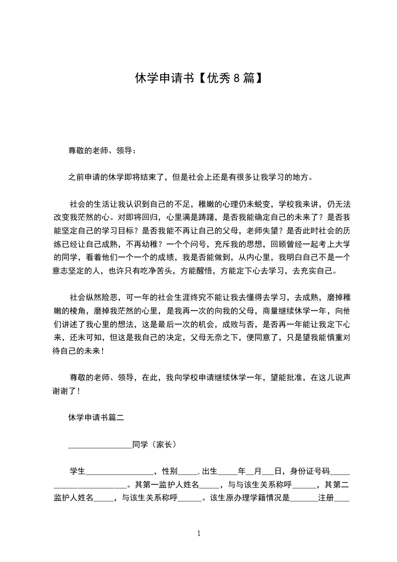 我是____学校___级_班的___(学籍号)。因____,需要____。故无法到校参加学校学习内容,申请___学期休学,时间为___,放弃参加期中期末考试。休学后,我会继续努力学习,加强自己的思想教育,使自己的思想始终与我校保持高度一致。在休学期间,我的人身安全以及其他问题皆由监护人、父母负责,与学校无关!