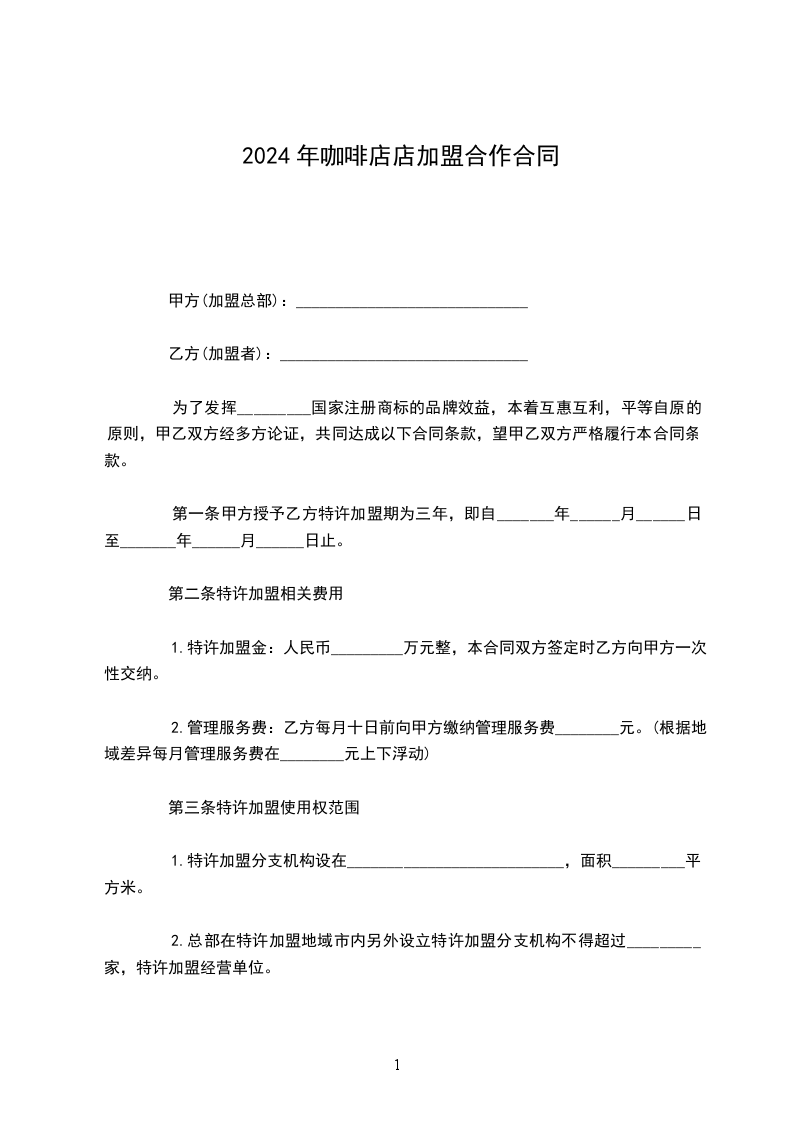根据相关法律、法规的规定,甲、乙双方在平等互利、协商一致的基础上,就乙方加盟甲方__店一事,达成如下协定: