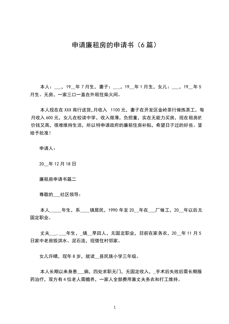 廉租房申请书篇三
