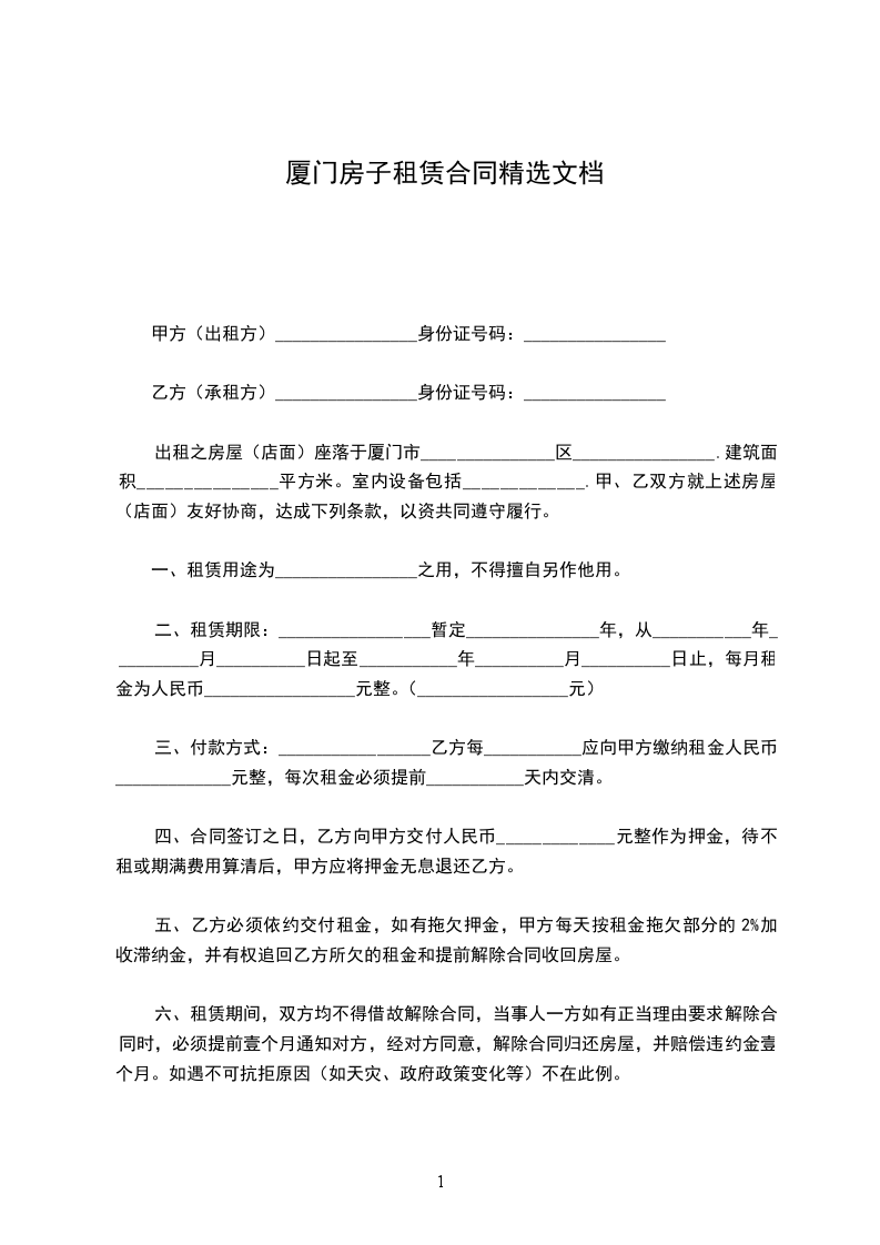 厦门房子租赁合同精选文档