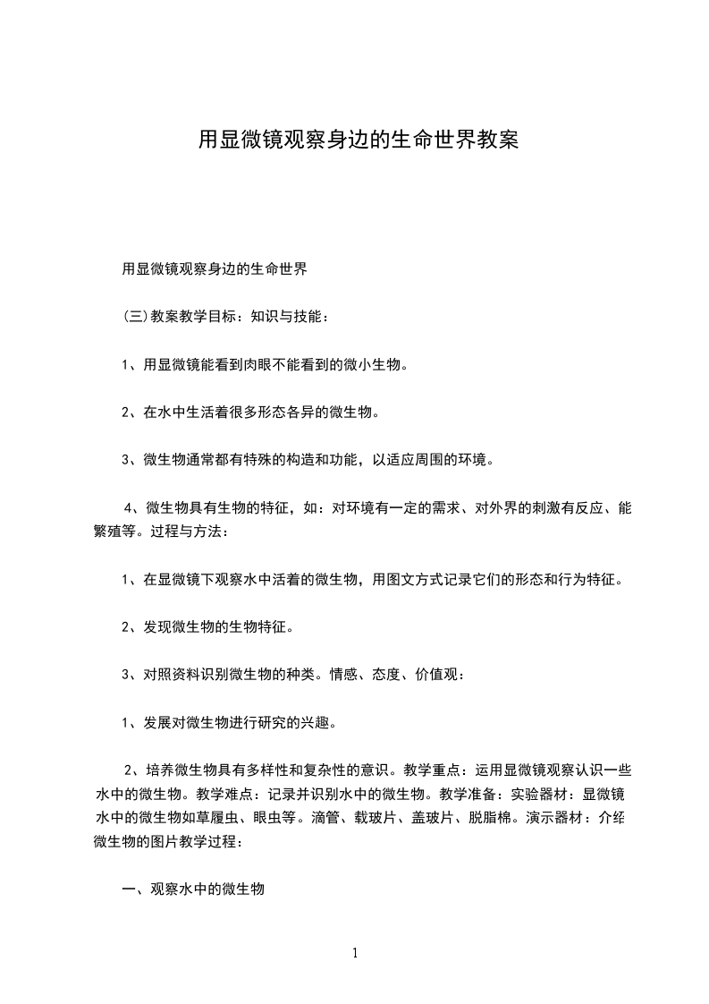 1、通过显微镜观察,探究微观生物世界,领悟到世界的奇妙精彩。