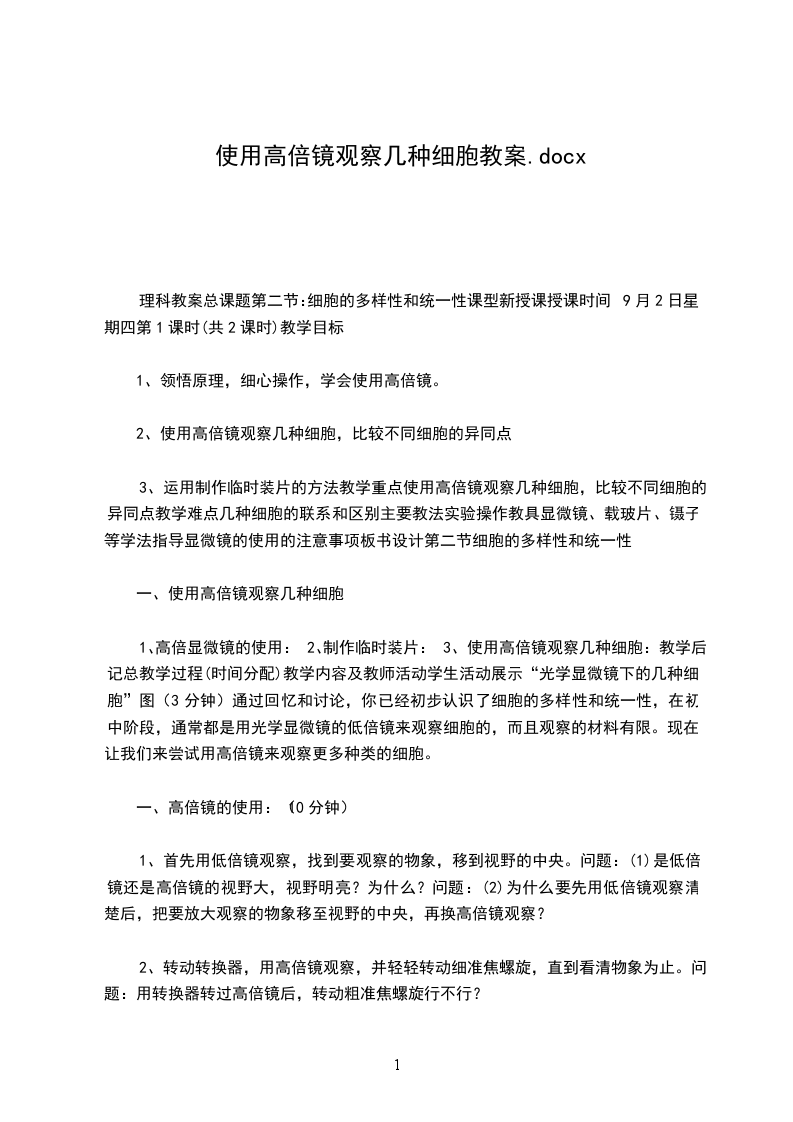 用高倍显微镜观察几种细胞、叶绿体和线粒体教案