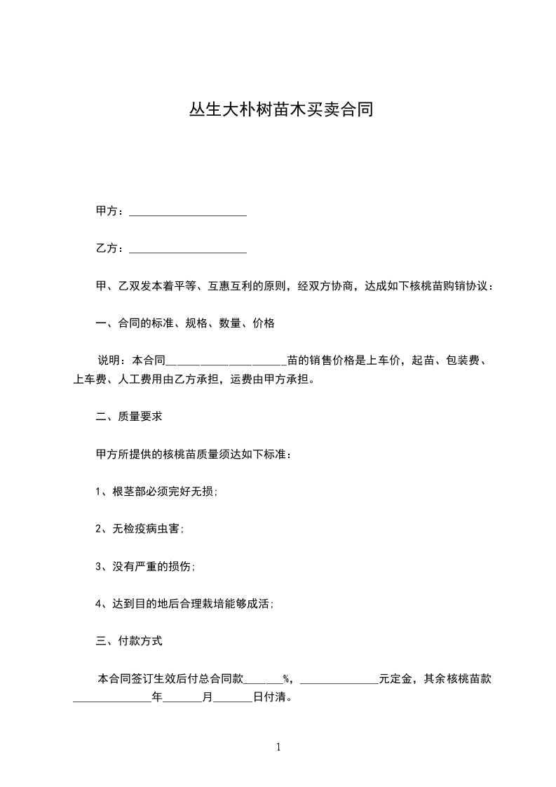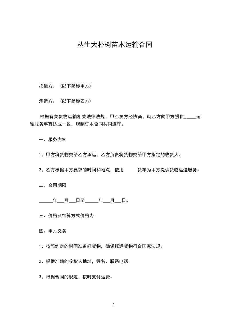 丛生大朴树苗木运输合同