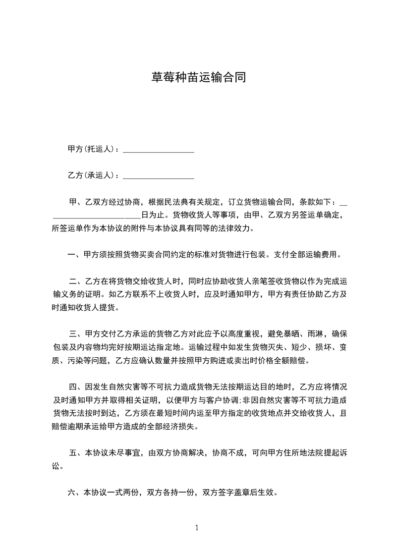 一、甲方委托乙方运输的苗木数量初步定为___万株,分批运输,每次运输数量和地点双方临时协商而定,运输费用以实际运输数量结算。