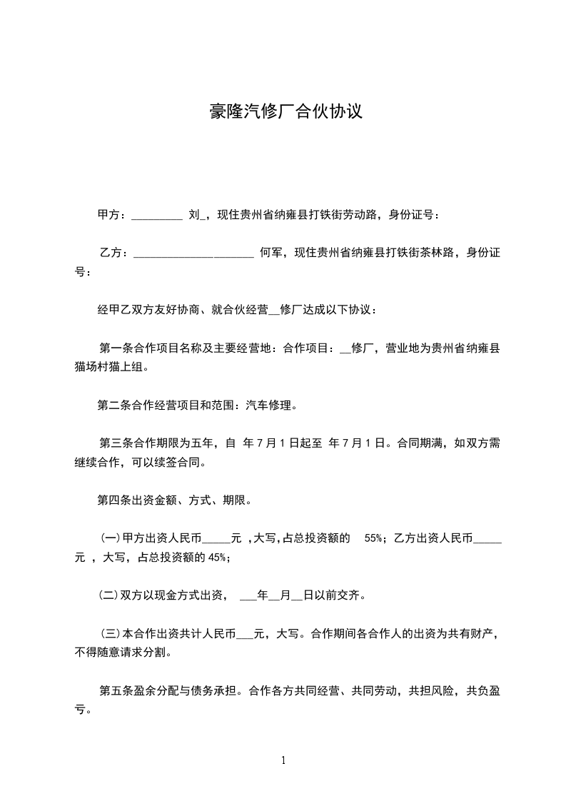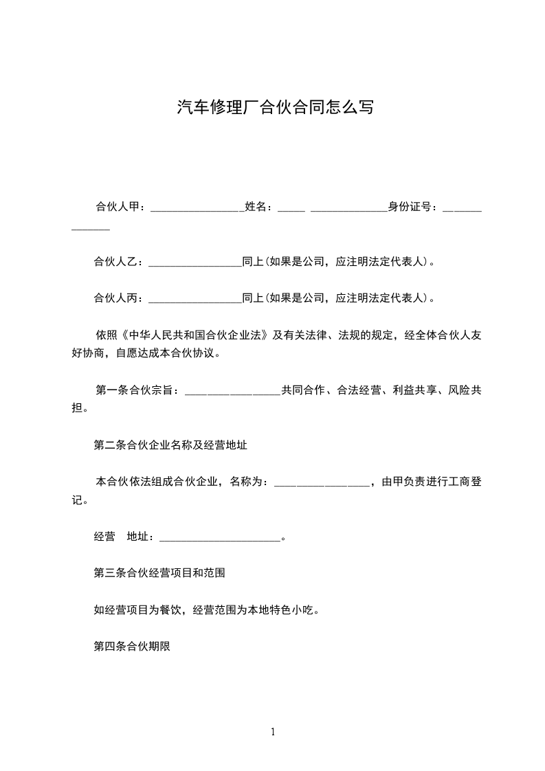 合伙人甲:_________________姓名:______________身份证号:______________合伙人乙:_________________同上(如果是公司,应注明法定代表人)。