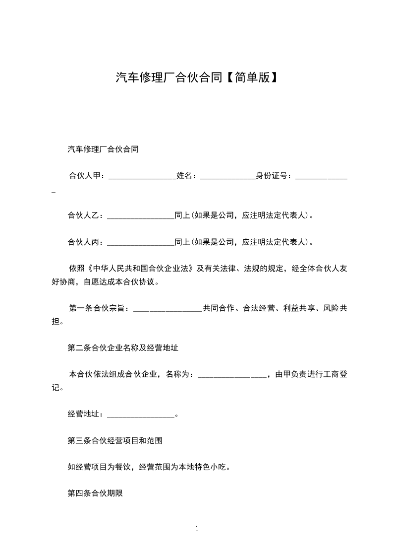 第一条合伙宗旨:_________________共同合作、合法经营、利益共享、风险共担。