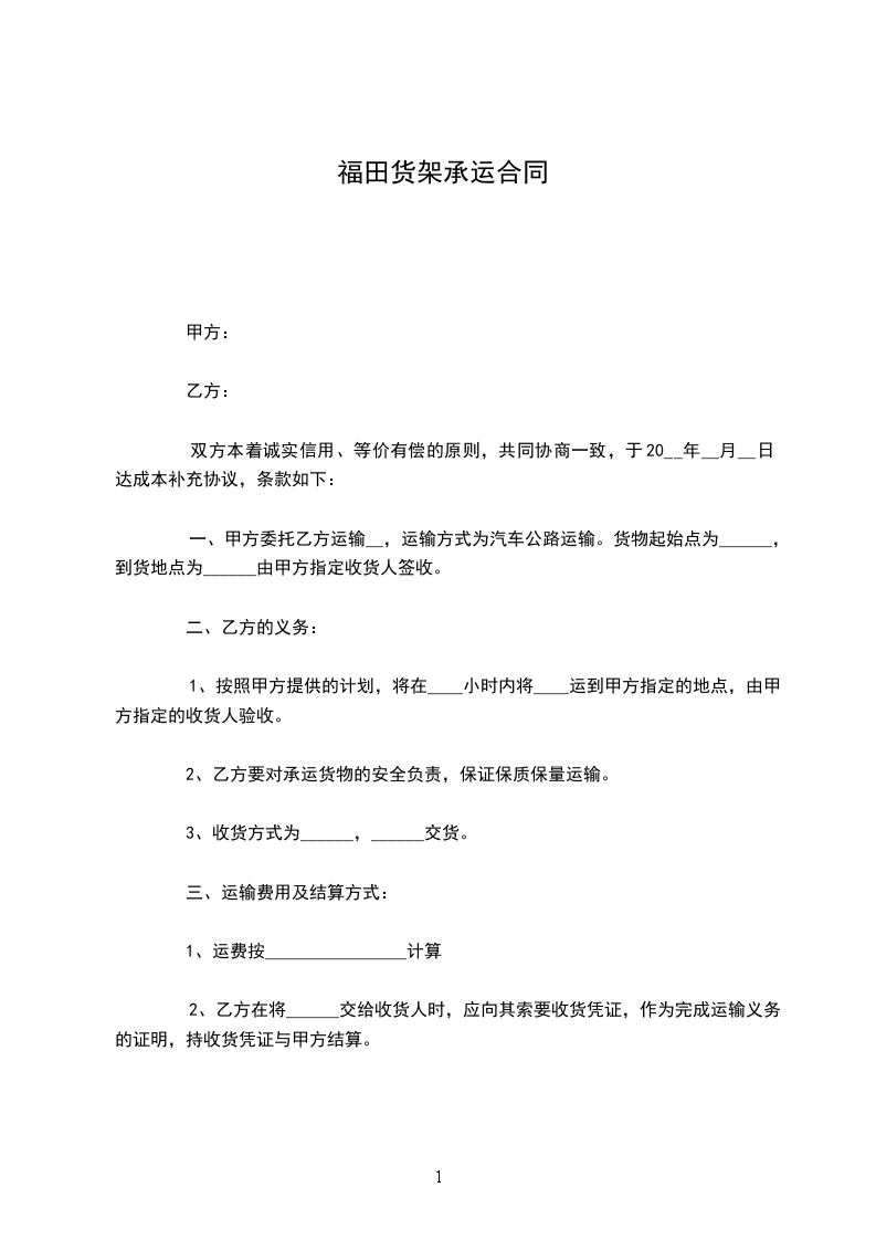 一、甲方委托乙方运输__,运输方式为汽车公路运输。货物起始点为______,到货地点为______由甲方指定收货人签收。
