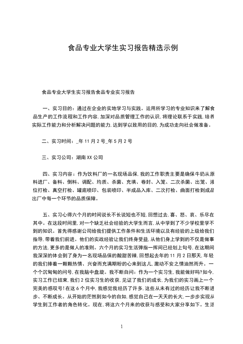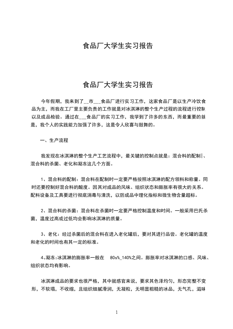 一、实习目的:通过在企业的实地学习与实践。运用所学习的专业知识来了解食品生产的工作流程和工作内容,加深对品质管理工作的认识,将理论联系于实践,培养实际工作能力和分析解决问题的能力,达到学以致用的目的,为成功走向社会做准备。
