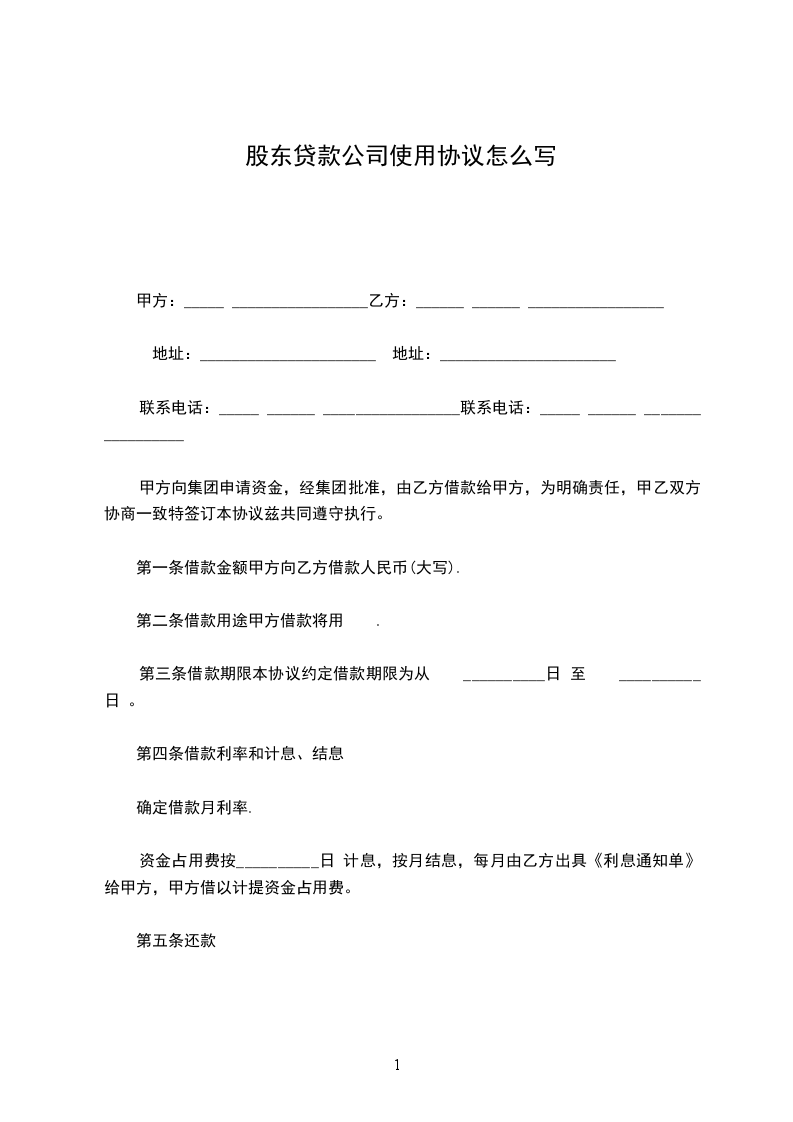 第一条借款金额甲方向乙方借款人民币(大写).