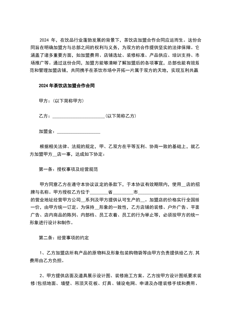 6.从甲,乙双方签订合同之日起三个月内乙方必须开店营业,反之甲方将不退还乙方所交纳的保证金5000元(伍仟圆整),并不再为乙方保留免收加盟费的名额。