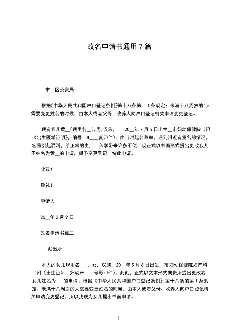 我儿易骞,出生20__年10月13日下午,现已五岁多了,系学龄前儿童。家住宣风镇红桥XX,本人在宣风镇中学工作,妻子务工务农,儿子出生时本人给他取名易骞,但在出生后至今的五年多时间里,使用”易骞”一名,带来了诸多不便,因为骞字是不太常用字,也很少在日常交际和书面语中出现,为人们所不熟悉之生僻字,笔划笔形多,书写也不方便,屡次在就医入托签名银行记帐等等情况下使用”易骞一名”时,为人们所误读误写,不熟悉该字的人见到这个生僻难写字时,总要打听”骞”读什么音。是什么意思。这些情形都带来了极大的不便,引来诸多的烦恼。正因为”易骞”一名难认难写易误读,现决定将”易骞”更名为”易X”,通俗易写,一目了然,响亮动听,涵意深刻,我和我的家人寄希望儿子在健康成长的氛围中,能有坚强的'意志,坚定的信念入学即始就能一步一步打下坚实基础,成长为响当当的新一代坚强坚定型男子汉。