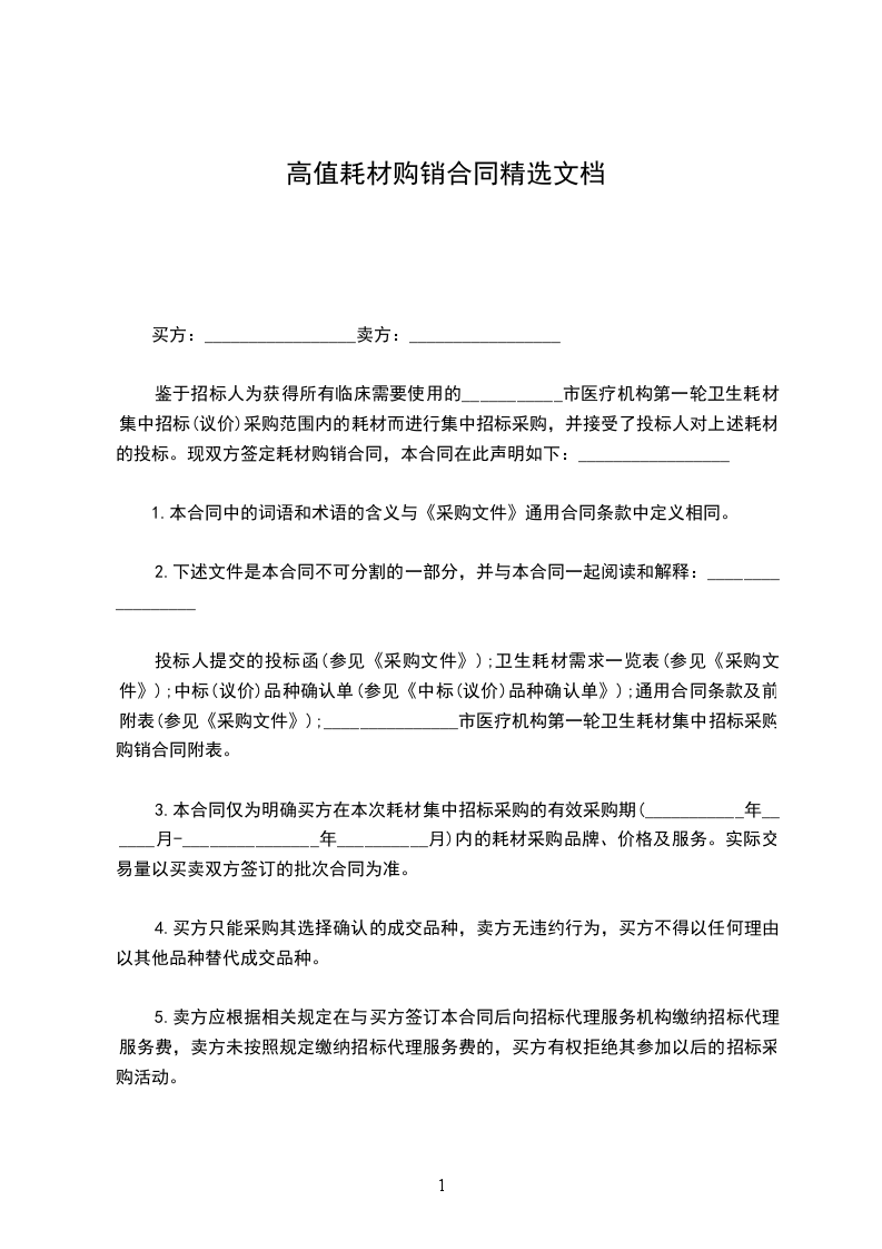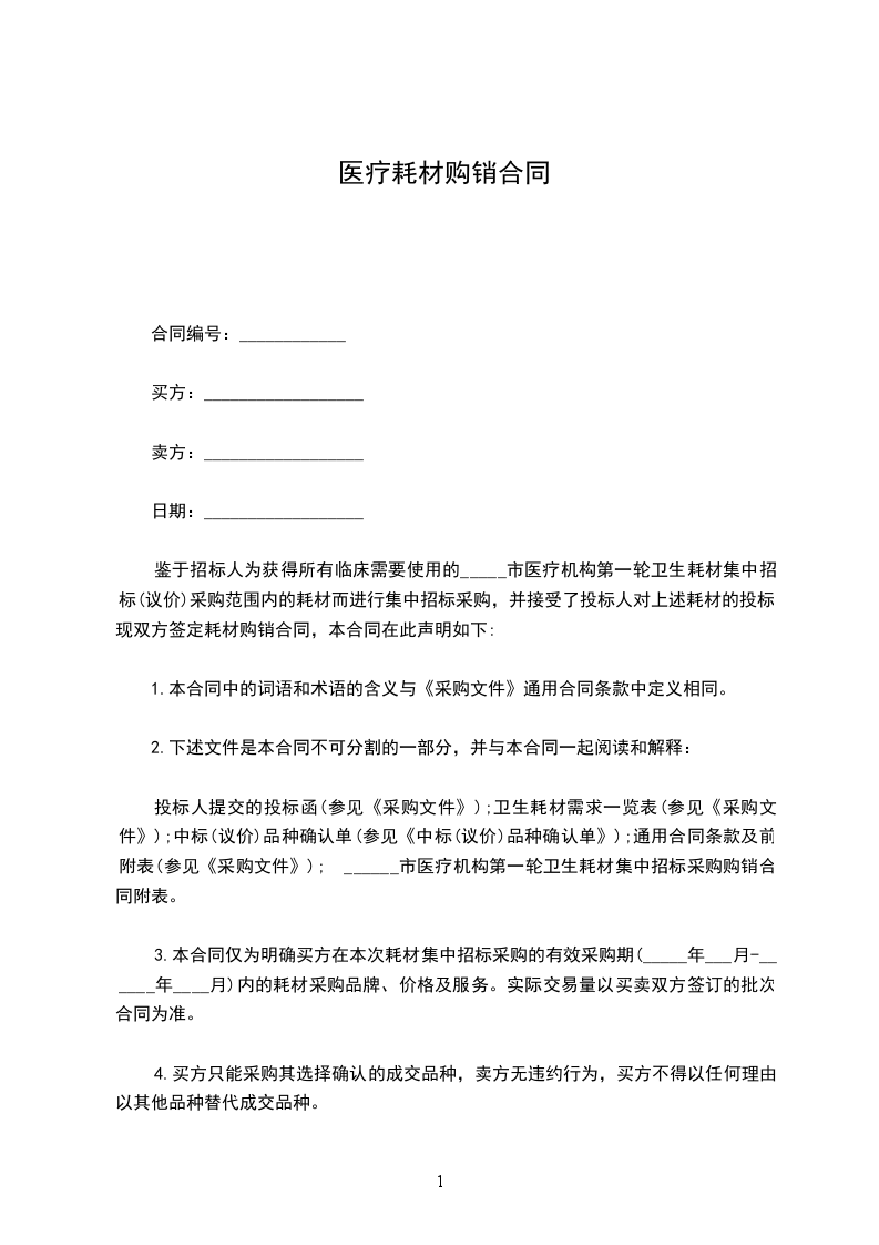 鉴于招标人为获得所有临床需要使用的___________市医疗机构第一轮卫生耗材集中招标(议价)采购范围内的耗材而进行集中招标采购,并接受了投标人对上述耗材的投标。现双方签定耗材购销合同,本合同在此声明如下:_________________