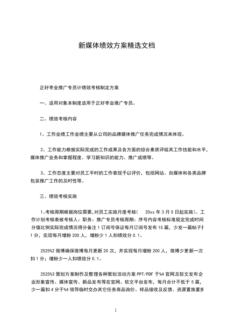 2525%3策划方案制作及整理各种策划活动方案PPT/PDF于%4官网及软文发布企业形象宣传、媒体宣传、新品发布等在官网、软文平台发布,每月合计不低于5篇,少一篇扣4分于%4领导临时交办其它任务商品询价、样品接收及反馈、资源置换置换等对接工作,未按时上报进度一次扣2分1010%合计(绩效工资于)本月底薪+绩效工资=说明:每项得分=每项工作计划所得分值_比例被考核人部门负责人签字:签字:日期:日期:本月任务及结果描述设计项目设计用时完成时间得分自豪的地方不足之处个人评价上级评价综评附:个人月工作总结与总评当事人对评测结果无异议签字确认:_2一类参照a