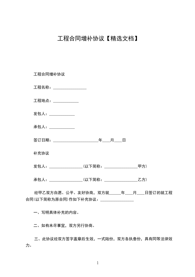 甲乙双方本着平等互利的原则,就工程施工有关事宜进行友好协商,并共同达成以下补充协议:_________________