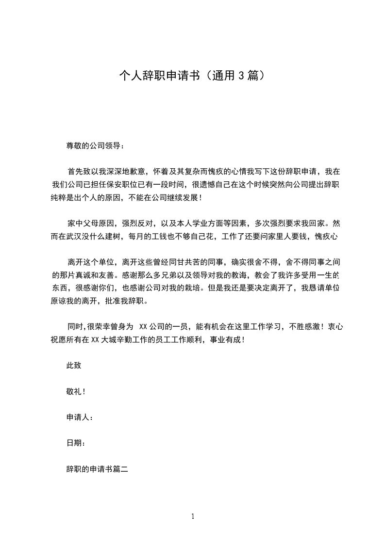 首先致以我深深地歉意,怀着及其复杂而愧疚的心情我写下这份辞职申请,我在我们公司已担任保安职位已有一段时间,很遗憾自己在这个时候突然向公司提出辞职,纯粹是出个人的原因,不能在公司继续发展!