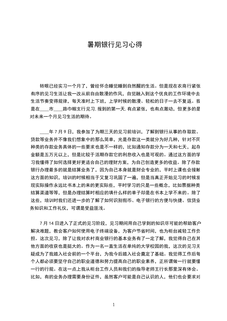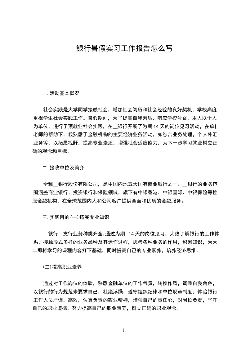 202_年7月13日至8月28日,我在银行支行度过了一个半月的实习期。在这段实习的日子里,我经历了很多,学到了很多同时也认识了自己现如今存在一些的优点和不足。现将我的暑假实习报告总汇汇报如下:先来简单地介绍下兴业XX吧:兴业XX是中国首批成立的股份制商业银行之一,1988年8月26日开业,注册资本39.99亿元,总行设在福建省福州市。开业以来,兴业XX始终坚持以支持国家经济建设、服务客户发展为己任,以建设一流现代商业银行为目标,改革创新,奋力开拓,各项事业持续、快速、健康发展,经营管理现代化水平不断提升,逐渐成长为中国金融业的一支有益力量。