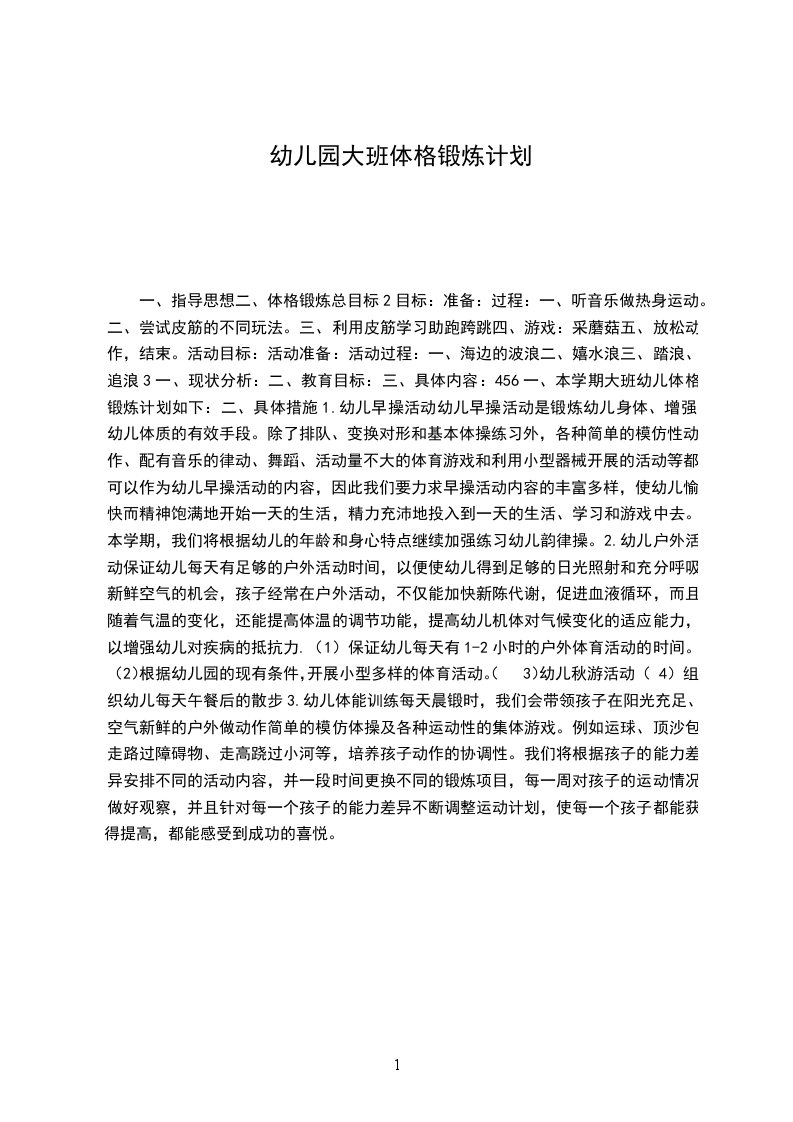 孙桥镇中心幼儿园体格锻炼活动方案幼儿离不开生活,生活离不开健康教育,幼儿的生活是丰富多彩的,健康教育也应把握时机。这个也正是为什么要说“健康第一”的充分理由。健康既是幼儿身心和谐发展的结果,也是幼儿身心充分发展的前提;健康是幼儿的幸福之源;离开健康,幼儿就不可能近尽情游戏,也不能专心学习,甚至无法正常生活;幼儿时代的健康不仅能够提供幼儿期的生命质量,而且为一生的健康赢得了时间。因此,我认为健康教育要充分考虑到本班孩子的年龄特点和个别差异,无论是进行幼儿健康教育还是试图改善幼儿的周围环境、都要依据幼儿身心发展的特点,否则不仅不能促进健康,而且可能有损健康。本学期我们宝宝班将在教育活动中把促进幼儿身心健康成长当成首要任务。因为促进幼儿身心健康发展既是幼儿教育的根本目的也是幼儿健康教育的终极目标。