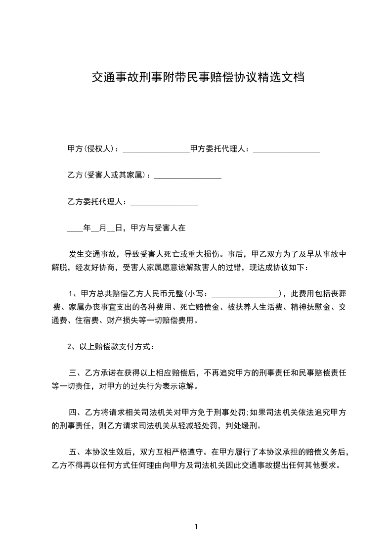 发生交通事故,导致受害人死亡或重大损伤。事后,甲乙双方为了及早从事故中解脱,经友好协商,受害人家属愿意谅解致害人的过错,现达成协议如下: