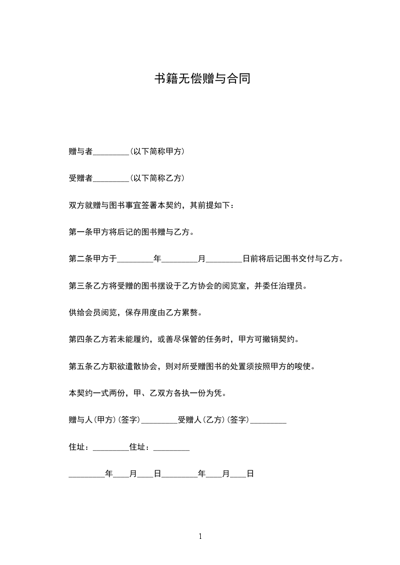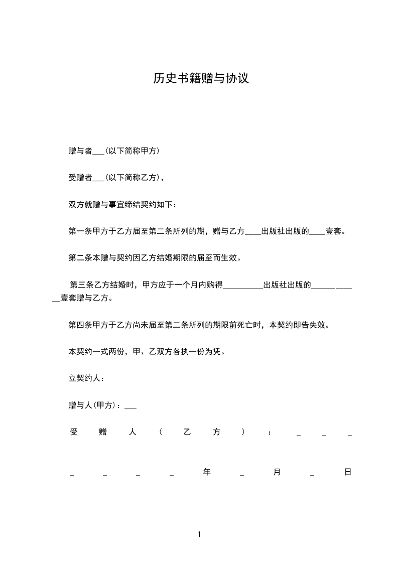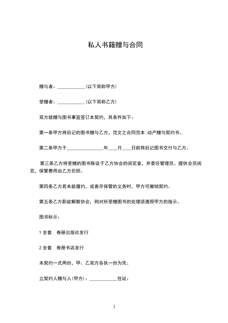 赠与者×××(以下简称甲方)、受赠者×××(以下简称乙方),双方就赠与图书事宜签订本契约,其条件如下: