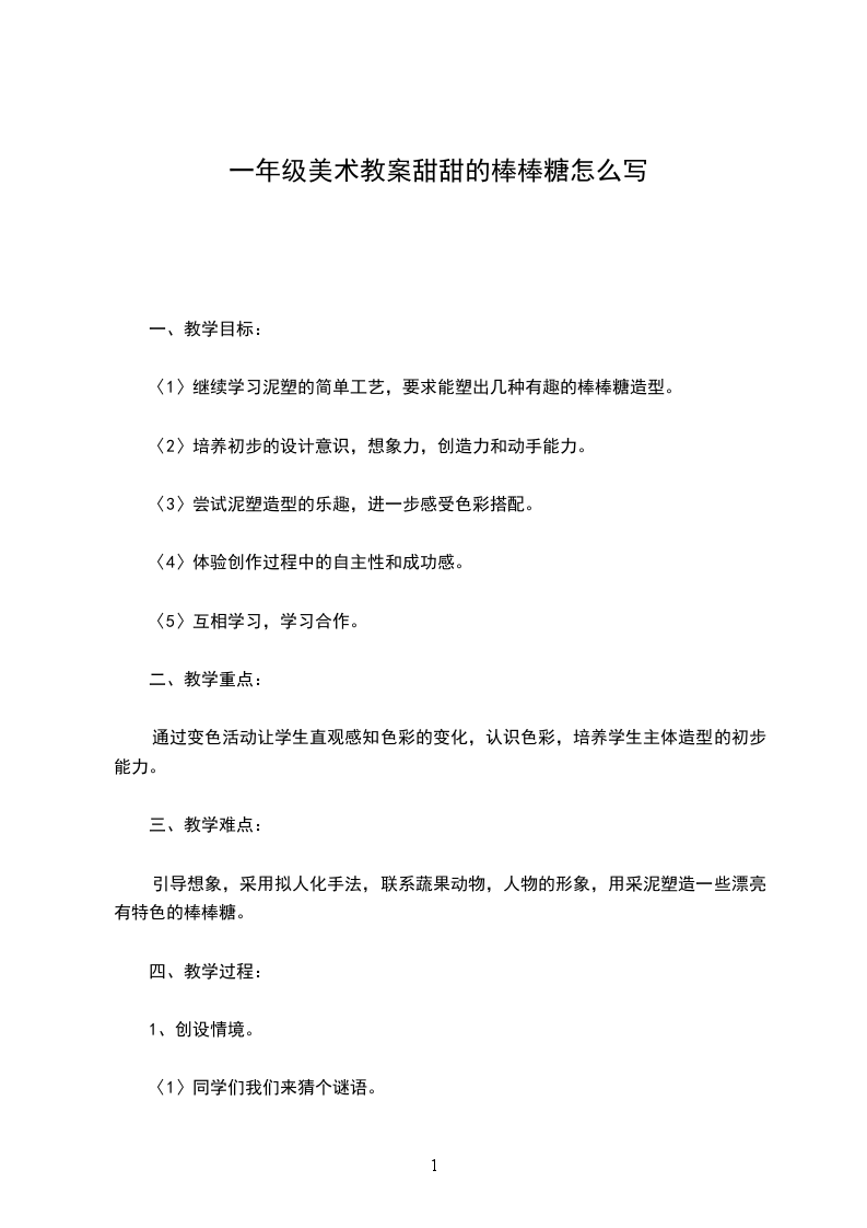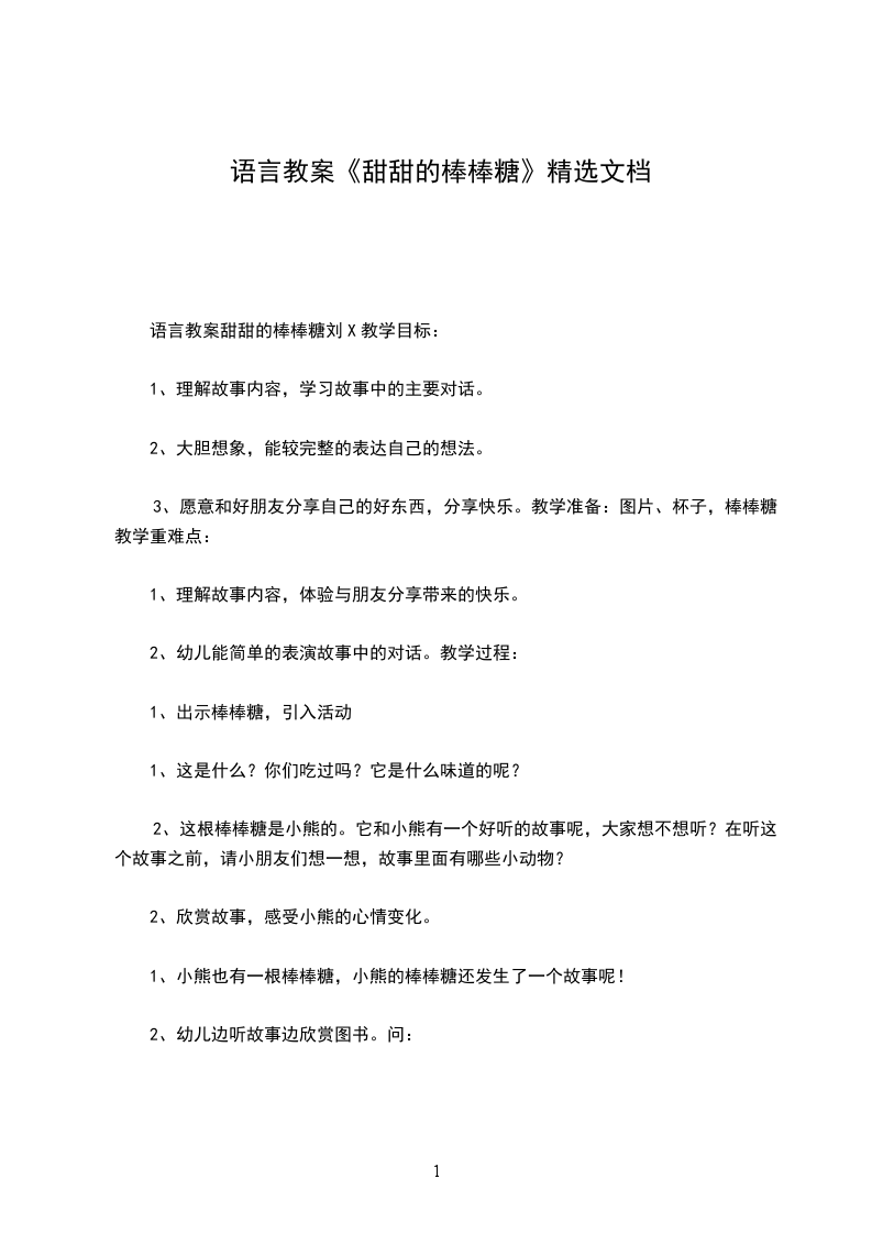 语言教案甜甜的棒棒糖刘X教学目标: