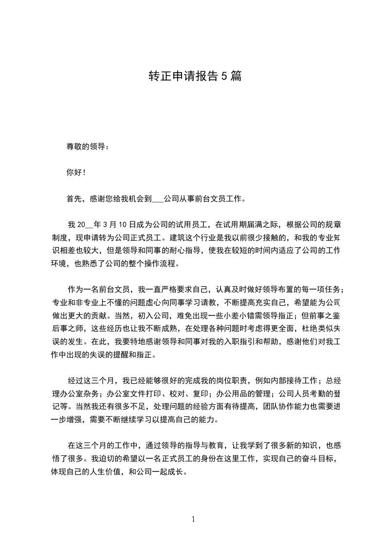 3、在公司的领导下,我会更加严格要求自己,在作好本职工作的同时,积极团结同事,任何事情沟通都是第一位的。在工作中,要不断的学习与积累,不断的提出问题,解决问题,不断完善自我,使工作能够更快、更好的完成。我相信我一定会做好工作,成为优秀的_中的一份子,不辜负领导对我的期望。谢谢公司领导给了我这样一个发挥的舞台,我也会珍惜这次机会,为我部门的工作全身心投入,为公司的发展尽我的绵薄之力。在此我提出转正申请,希望自己能够成为公司正式员工的一员,恳请领导予以批准。