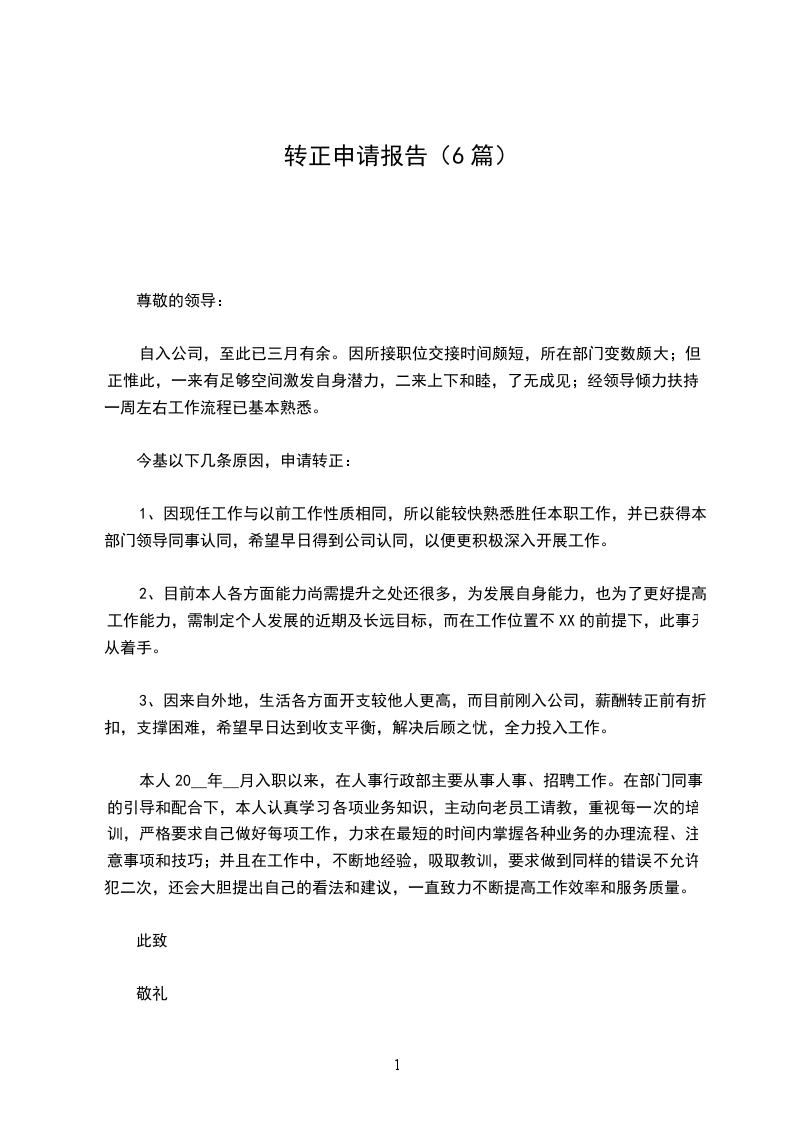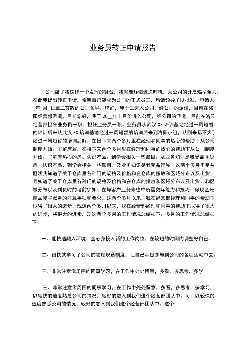 总之,在这两个月的工作中,我深深体会到有一个和谐、共进的团队是非常重要的,有一个积极向上、大气磅礴的公司和领导是员工前进的动力。XX公司给了我这样一个发挥的舞台,我就要珍惜这次机会,以XX为家、顾客至上、合作奋斗的口号来严格要求自己,为公司的发展竭尽全力。在此我提出转正申请,希望自己能成为公司的正式员工,恳请领导予以批准。