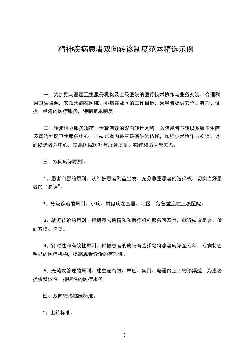 4、针对性和有效性原则。根据患者的病情有选择地将患者转诊至专科、专病特色明显的医疗机构,提高患者诊治的有效性。