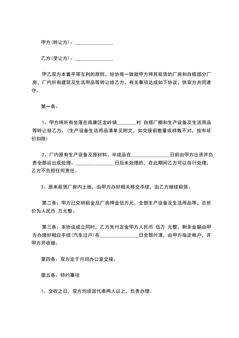 五、其他约定:乙方已悉知以上厂房无法办理房地产权属证书,甲方不负有协助乙方办理房地产权属证书的义务。以后如确需甲方协助办理有关手续的,甲方应无条件予以协助。