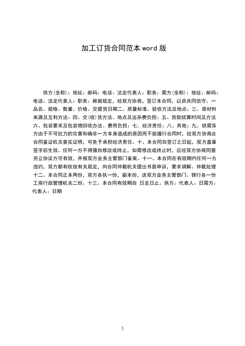 供方(全称):地址:邮码:电话:法定代表人:职务:需方(全称):地址:邮码:电话:法定代表人:职务:根据规定,经双方协商,签订本合同,以资共同信守。