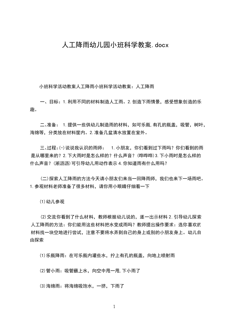 幼儿园小班科学优秀教案看雨幼儿园小班科学活动教案:看雨活动目标: