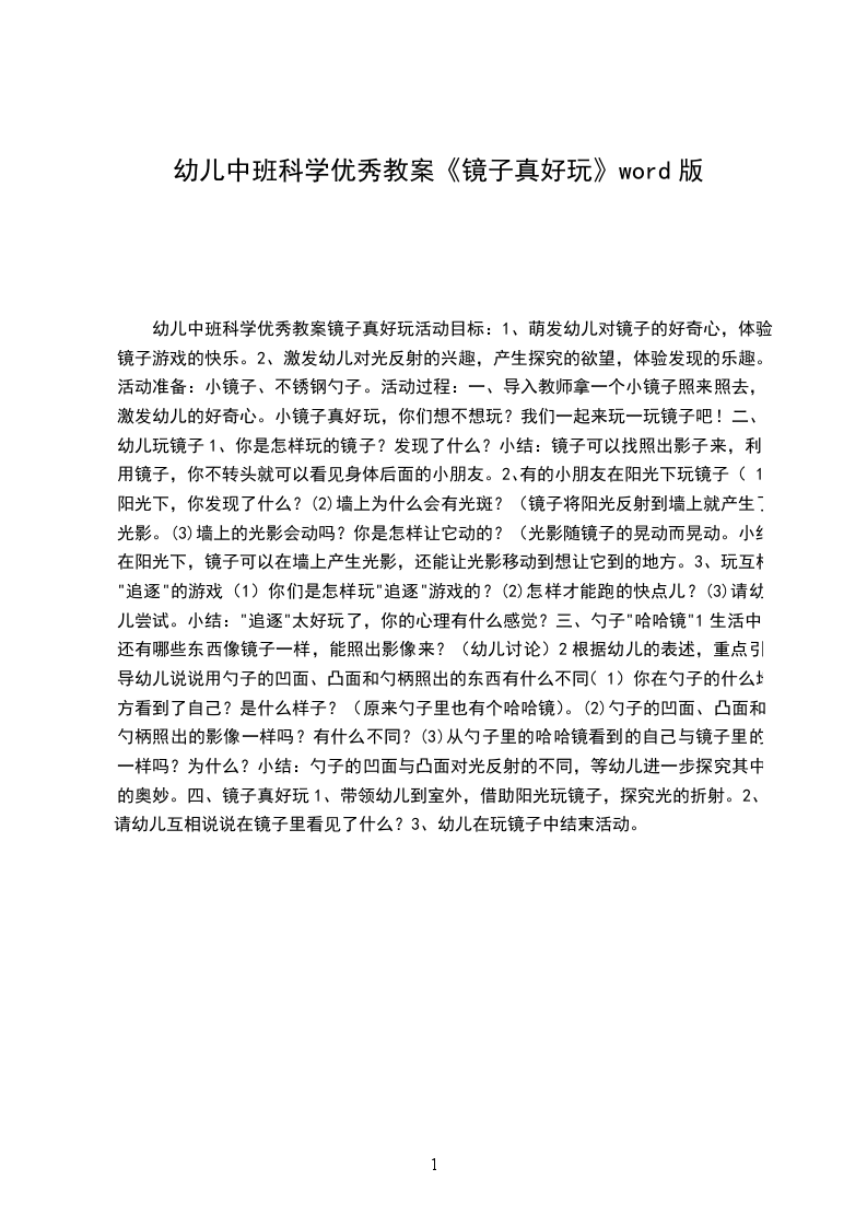 幼儿中班科学优秀教案镜子真好玩活动目标: