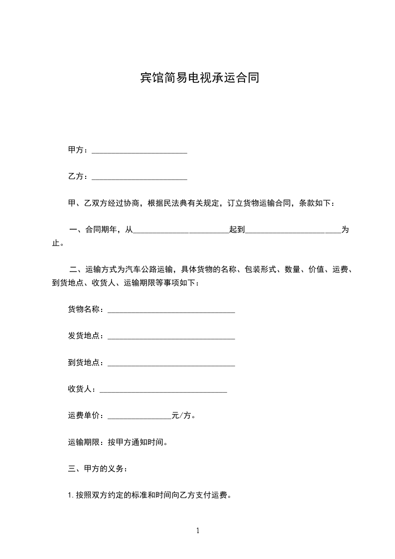 甲方委托乙方运输由_____________________到_____________________,经甲乙双方协商,自愿达成如下协议: