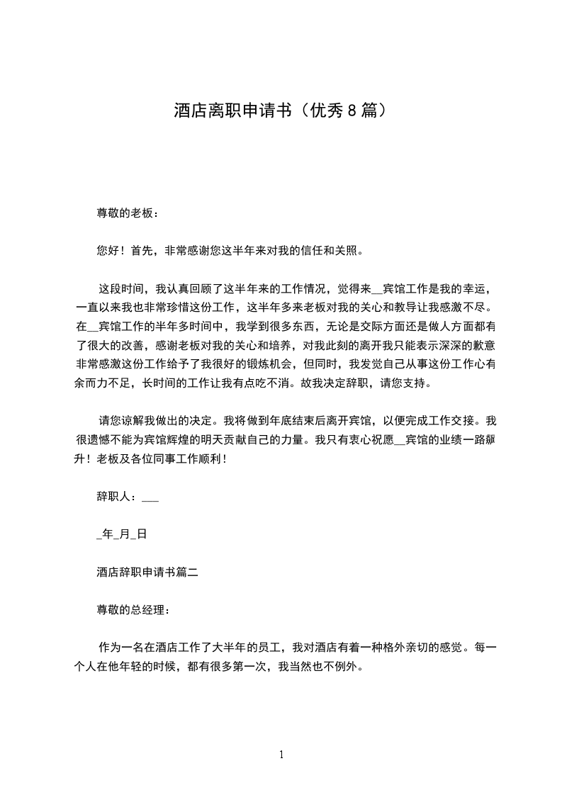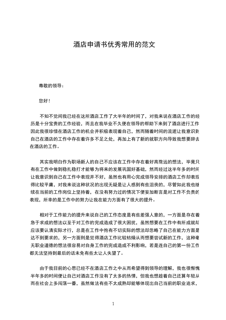 尊敬的酒店领导: