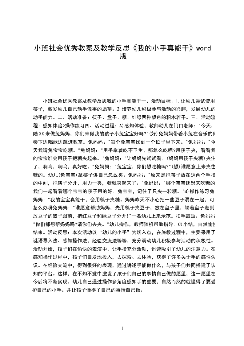 小班社会优秀教案及教学反思我的小手真能干