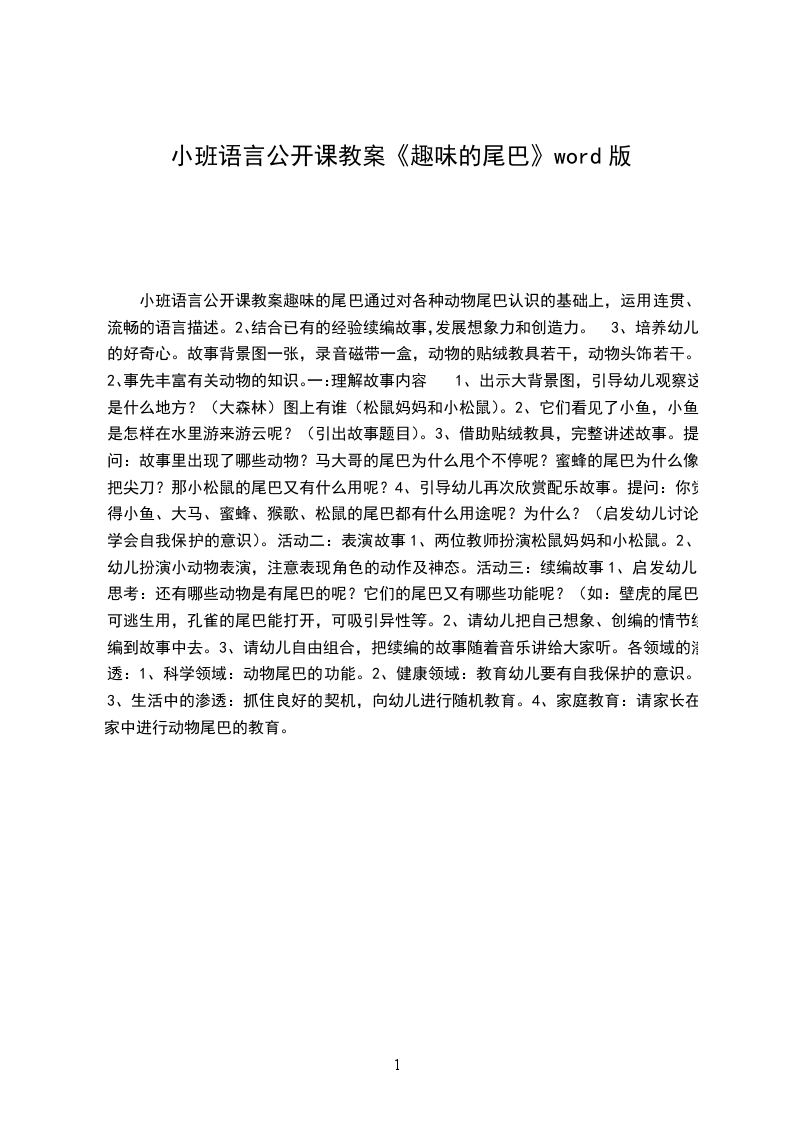 小班语言公开课教案趣味的尾巴通过对各种动物尾巴认识的基础上,运用连贯、流畅的语言描述。