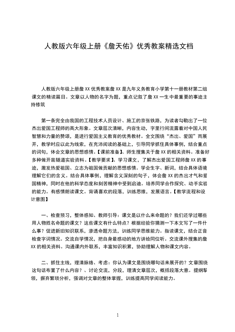 人教版六年级上册詹XX优秀教案詹XX是九年义务教育小学第十一册教材第二组课文的精读篇目。文章以人物的名字为题,重点记叙了詹XX一生中最重要的事迹主持修筑