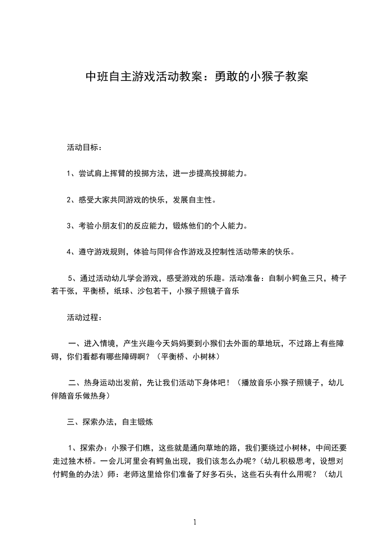 1、发展幼儿走、跑、钻和平衡的动作,培养幼儿动作的灵敏和协调的能力。