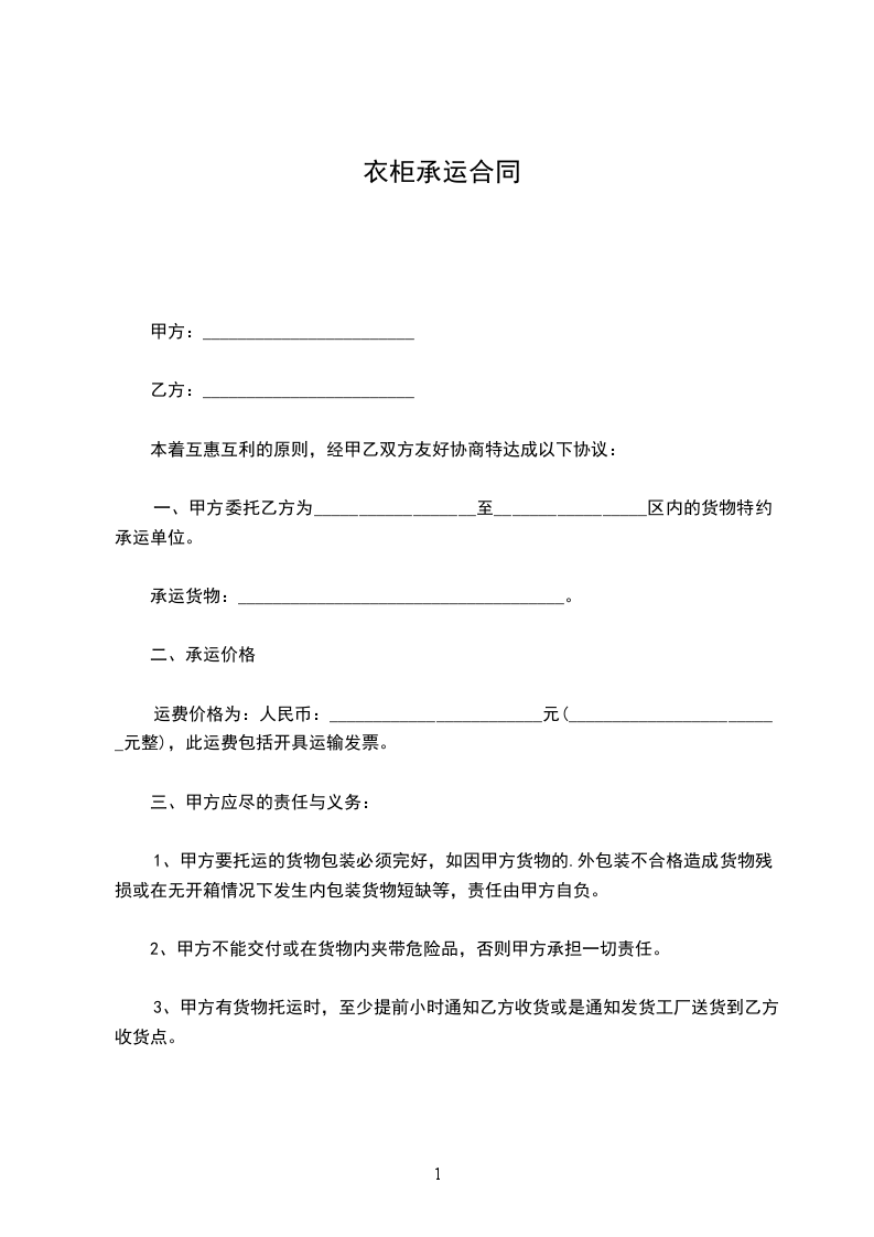 一、甲方委托乙方为__________________至_________________区内的货物特约承运单位。